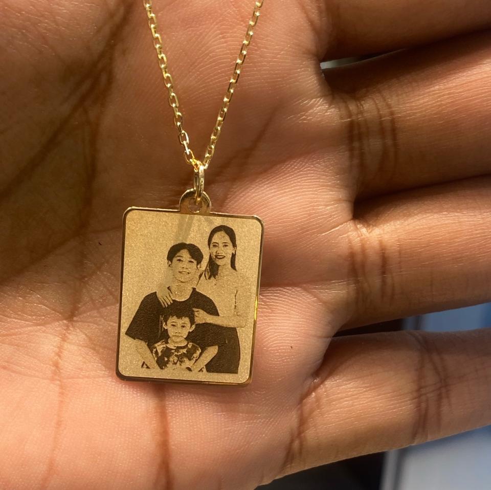 Our 18k Gold Personalized Photo Pendant turns your most cherished memory into a timeless piece of jewelry — beautifully laser-engraved to preserve love, family, and connection forever.